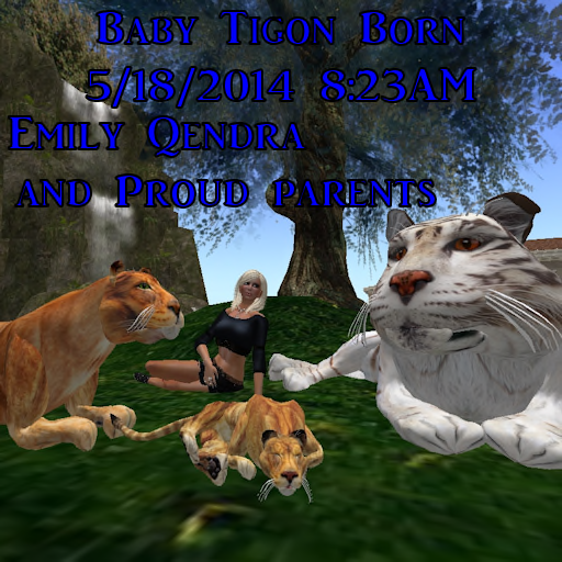 Today was just like any other day, or so I had thought. Who would have suspected that today would end the wait for the first of the Tigons to be born into our Second Life (SL) community. This is a very rare occurrence but a wonderful one to see happen FINALLY.