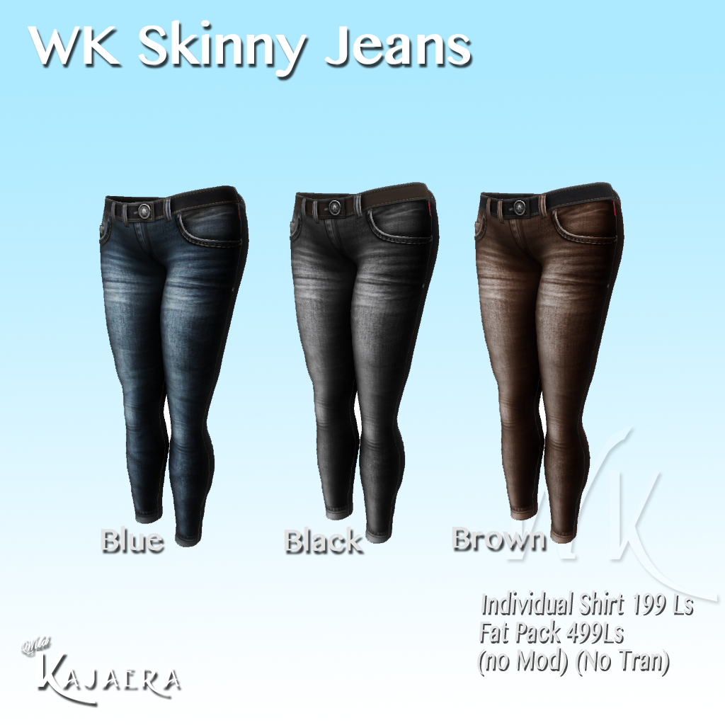 The Skinny Jeans are what all the Avatars are wearing this season and you won’t want to miss on these. Again they are mesh and hug your Avatar Body and are a nice complement to the WK T Shirts