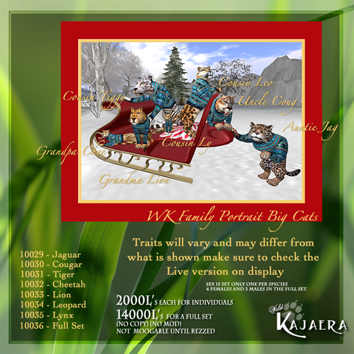 What can we say we have been very busy and were not done yet. The first of the Holiday Family Animals have arrived. Have to shoo them out of the work room so we can get the Wild dogs dressed for the family photo and hares and ferrets will be not far behind. All the Family photo animals will be wearing the matching sweater. The Sweater DOES NOT PASS. the fur underneath and the parents of the animals are never before seen on the grid and will be the only way to get them are from these very special Limited Edition animals. You can find these animals at the Winter Playground