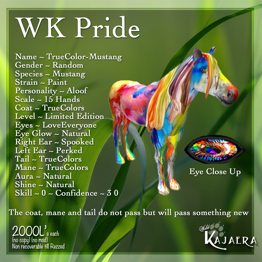 This will also only be available for one week so stop by and pick up yours today. http://maps.secondlife.com/secondlife/WK%20Wild%20Kajaera/118/121/22