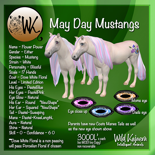 In celebration of May Day we have released a May Day Mustangs. These mustangs come with New Ear shapes, Coats, Manes and tails. Packed full of traits its a must see.