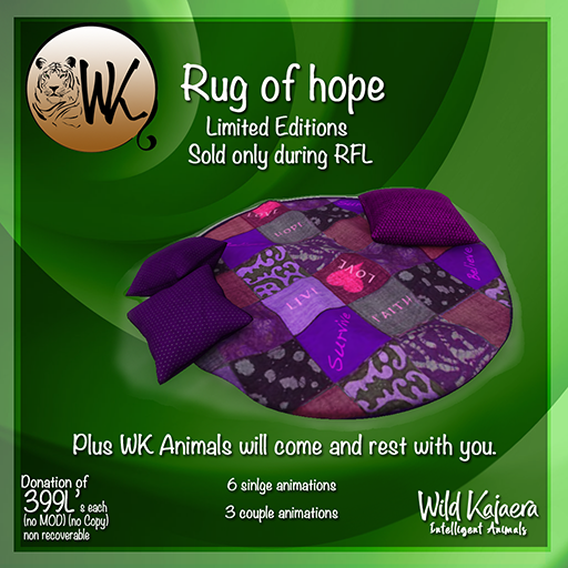 There will be four rounds that are two hours each. Entrants will purchase a spot on an easel and post a picture of their “Best Pet”. Votes will be counted in Lindens donated to the kiosk next to their easel. The top six will go to the final round at 3-5 pm to be featured in a calendar that will be sold at Team Shadow’s site during the Relay for Life on June 12 and 13.