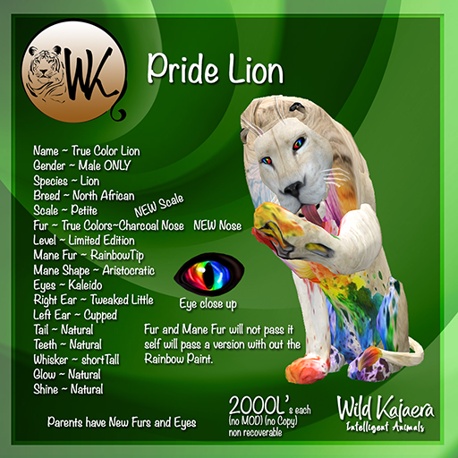 Our WK Lion ran through a rainbow river and was caught before he could clean it off. What a a special boy he is. The underlaying fur has a pair of muddy back lags as he is not able to get completely clean before it will pass. The True Colors will not pass it will pass a new fur. Rainbow Tip will also not pass. The furs in this trip of furs that can pass are a very pail set just a hint of color.