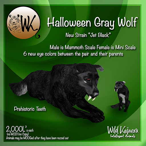 The L.E. Is in your choice of male or female. Each of the wolves have various furs and eyes all of which are new to the grid.