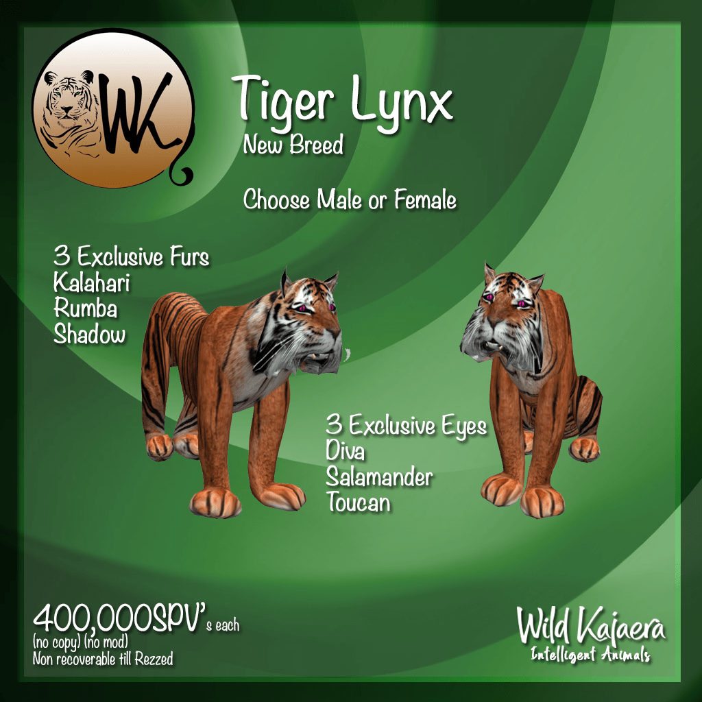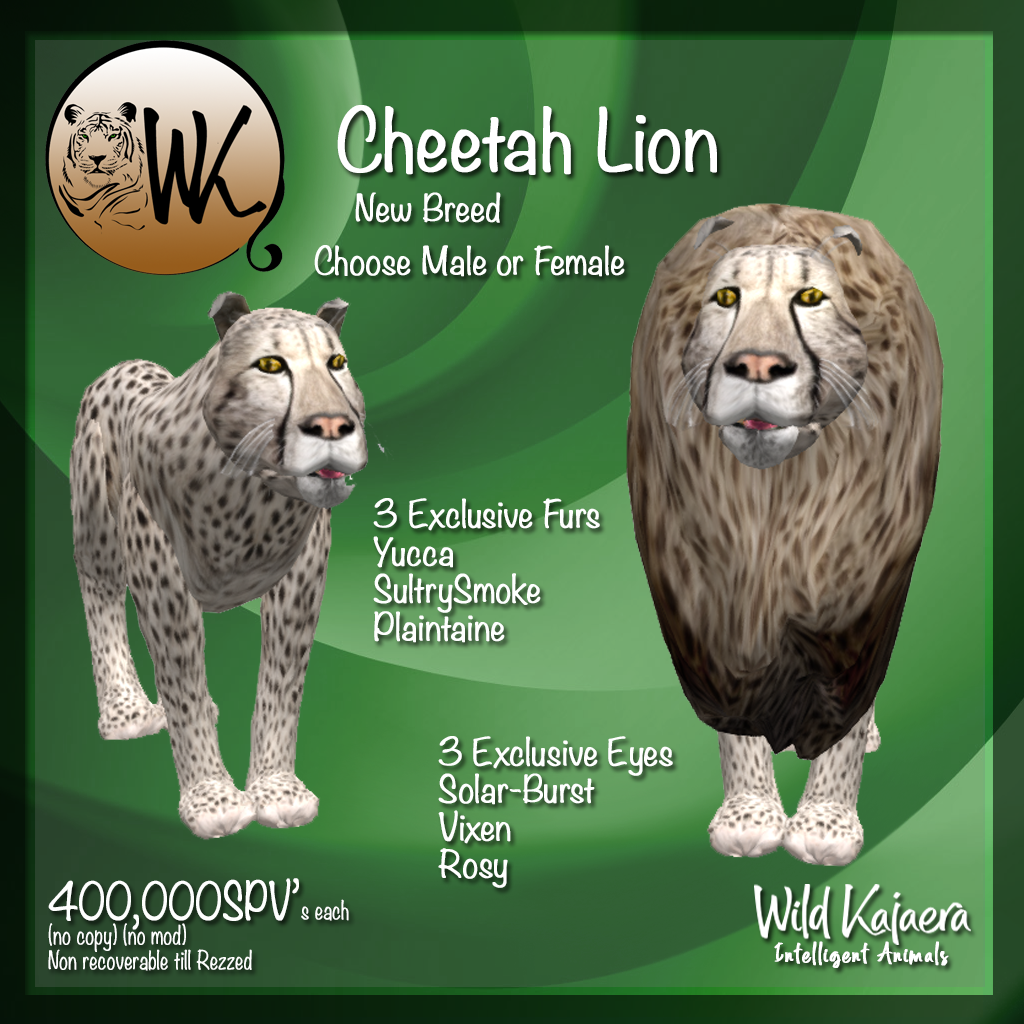 As if that was not enough we came up with a NEW BREED for the Lynx, Cougars and Lions. You may think you are seeing double as they do look similar to some of the other species but we are sure you will absolutely love what they are and what they will produce.
