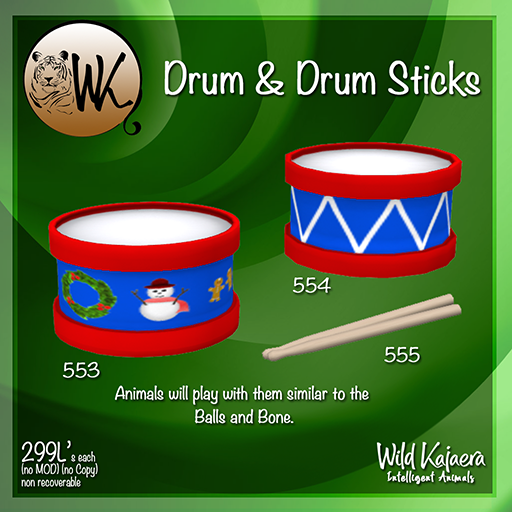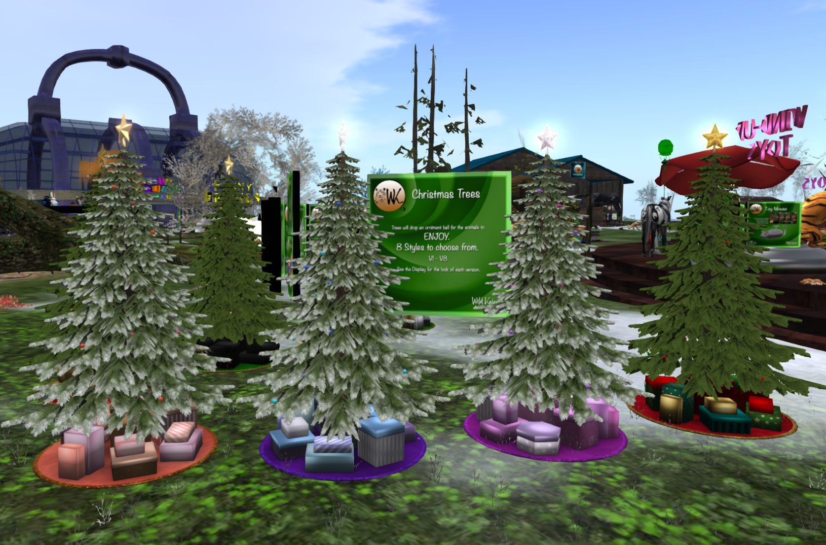 8 New Christmas Trees to choose from they will drop ornaments when your animals are near. Stop by and pick one up today. http://maps.secondlife.com/secondlife/WK%20Wild%20Kajaera/131/153/21