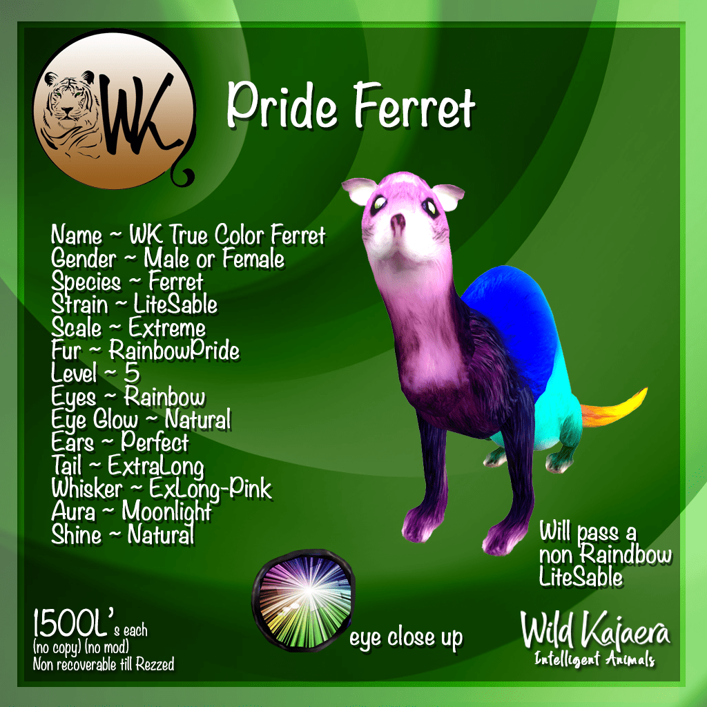 The Ferrets on the other hand got caught trying to run up a rainbow. The colors are a bit mixed up but they don’t mind. The Rainbow Pride Fur will not pass but will pass a new strain called Lite Sable.