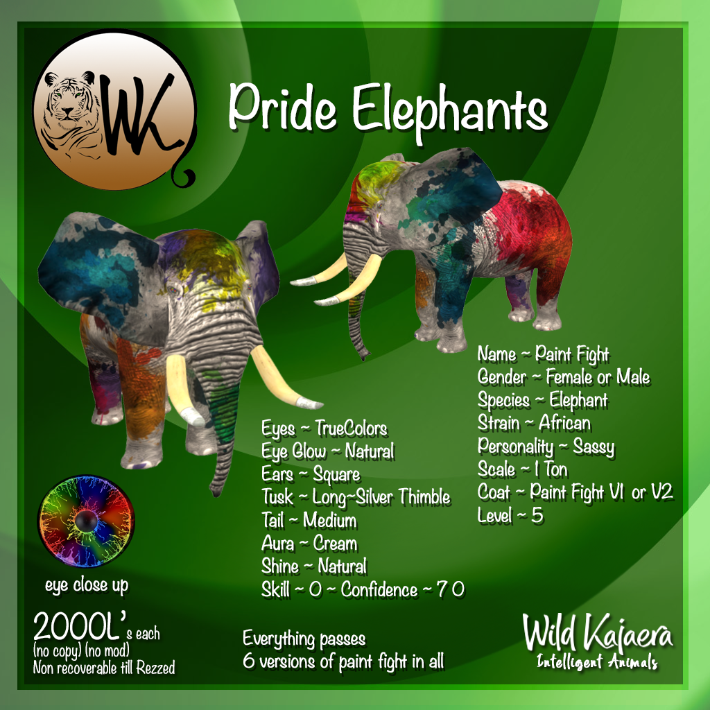 These animals will be out for the month. Spread the word if you know someone who would like a special animal to brighten their Second Life WK has many animals to choose from and some amazing breeders in the community.