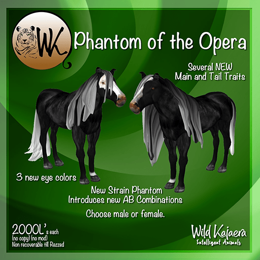 This horse is a night at the Opera that introduces a new strain called Phantom. This Limited Edition horse is special in the fact that it releases a whole new set of AB combinations for you to work on. We hope you enjoy the breeding experience.
