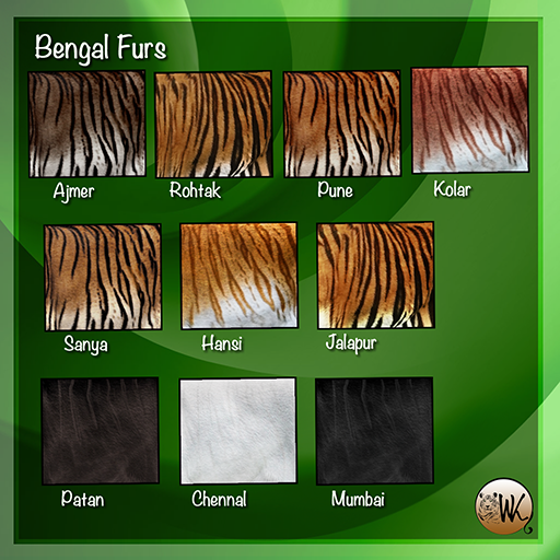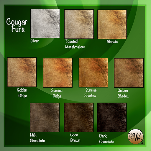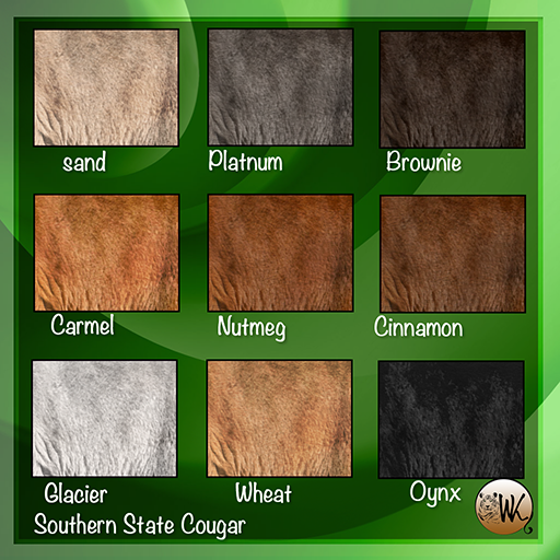 1. Hi, Just wondering if there are images of the North Western Cougar Furs, and the Sumatran Tiger Furs? Sorry to be a bother !